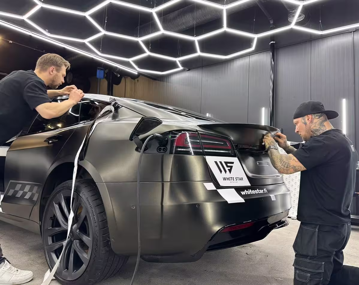 Auton yliteippaus (vinyl wrap) muuttaa koko auton ilmeen ilman pysyvää maalausta. Laadukas yliteippauskalvo suojaa samalla kevyesti kiveniskuilta ja UV-säteiltä, ja reunat käännetään piiloon siellä missä mahdollista, jotta lopputulos on huomaamaton ja kestävä